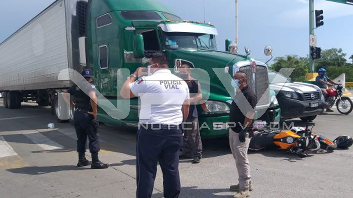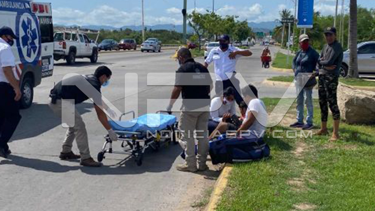 Paramédicos del cuerpo de bomberos de Bahía de Banderas, auxiliaron a joven motociclista que iba acompañado de una niña sobre el boulevard Rivera Nayarit, a la altura del semáforo de Plaza Lago Real, luego de que fueron atropellados por un tráiler.
