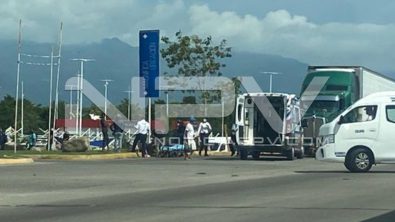 Llevaba a su niña, cuando fue embestido por el pesado vehículo, el cual los arrastró algunos metros *Fueron llevados al CMQ de Bucerías