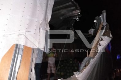 El accidente ocurrió por la carretera de San Juan a El Colomo donde el conductor del camión que iba cargado de sandia evitó chocar con un auto y se estrelló contra una Jarretadera