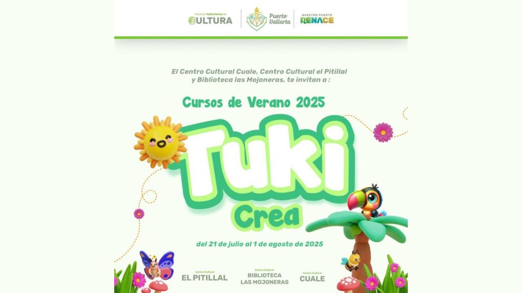 Este verano es una fiesta ya que, del 21 de julio al 1 de agosto, el Centaro Cultural El Pitillal, Centro Cultural Cuale y la Biblioteca Las Mojoneras se convertirán en un escenario de diversión y aprendizaje con una variedad de cursos emocionantes “Tuki Crea” para niños y niñas, por lo que ya están abiertas las inscripciones.
