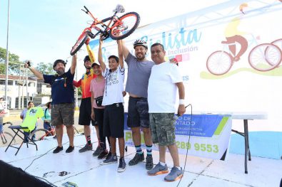 El funcionario municipal hizo entrega de algunos premios a las personas con discapacidad que participaron en esta rodada, además de realizar la rifa de algunos otros regalos que otorgaron los patrocinadores, así como una bicicleta que ganó el joven Diego Armando Isordia.