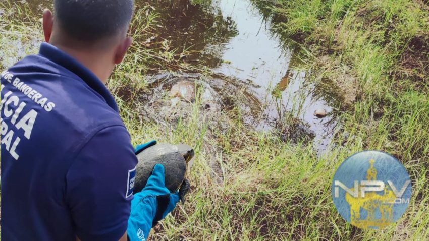 Una tortuga a punto de ser atropellada fue rescatada por la Patrulla Verde en Bucerías