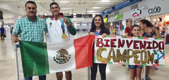 A su llegada al aeropuerto local, fue recibido por José Amador Hernández Madrigal, director del Consejo Municipal del Deporte, en representación del presidente municipal Arturo Dávalos Peña, así como familiares y amigos.