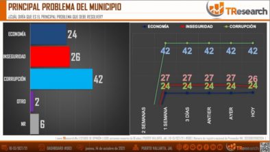 Otro de los rubros que aborda esta encuesta, es la percepción ciudadana sobre lo que consideran uno de los principales problemas del municipio, siendo la corrupción el de mayor referencia pues un 42 por ciento de los encuestados manifestaron su preocupación.