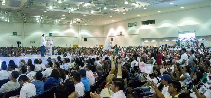 Ante más de 7 mil personas que abarrotaron el Centro Internacional de Convenciones, el primer edil presentó un balance de acciones, logros y avances de su administración