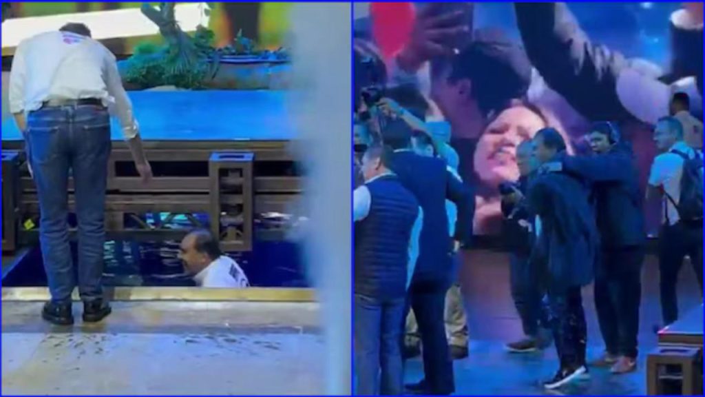 Con ayuda de otros miembros del partido logró salir del agua, mientras parte del equipo de producción le colocó lo que parecía un abrigo. El incidente provocó risas entre los asistentes y del propio Cortázar, quien salió del agua sonriente y completamente mojado.