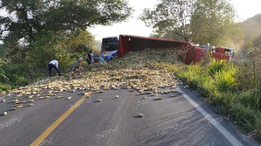 en Volcadura de un torton bloqueó la carretera 200 en El Monteón