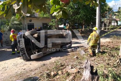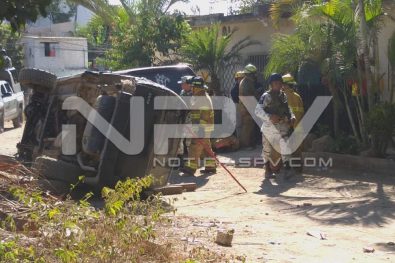 Se registró fuerte volcadura en el poblado de Mezcales, donde reportaron cuantiosos daños y una persona sin signos vitales, aunque después informaron que los Paramédicos lograron sacarlo del paro respiratorio y fue llevado de urgencia a un hospital para su atención médica.