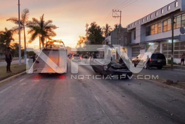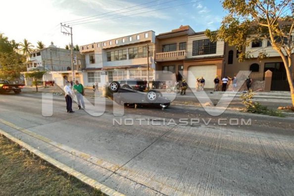 Se registro la volcadura de un auto en el poblado de Bucerias, donde resultó lesionado el conductor de 19 años, quien fue llevado a recibir atención médica a un hospital.