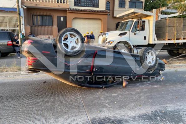 Una persona lesionada y cuantiosos daños materiales fue el saldo del accidente que ocurrió sobre el Boulevard Riviera Nayarit donde un automóvil quedó con las llantas arriba