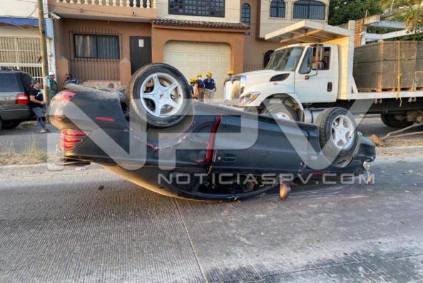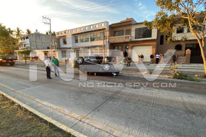 Se registro la volcadura de un auto en el poblado de Bucerias, donde resultó lesionado el conductor de 19 años, quien fue llevado a recibir atención médica a un hospital.