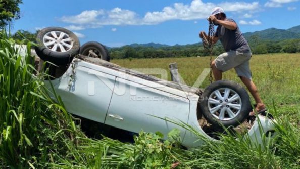 Aparatosa volcadura se registró por la carretera del camino viejo rumbo a Valle de Banderas, donde afortunadamente no se reportaron personas lesionadas, pero sí cuantiosos daños materiales, haciéndose cargo de tomar nota los agentes de Tránsito de Bahía de Banderas.