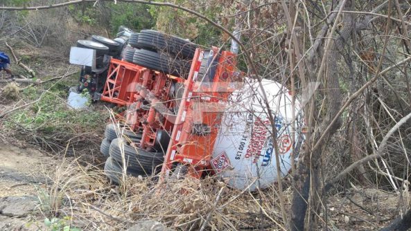 Esta mañana reportaron la volcadura de una pipa que cayó a un barranco de al menos 5 metros donde al principio decían que había lesionados pero al arribar las autoridades al lugar informaron que sólo eran daños materiales.