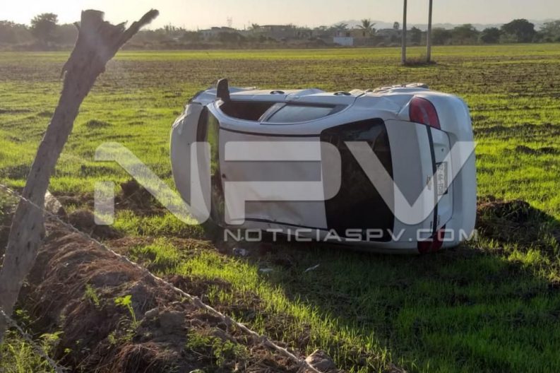 Dos personas lesionadas y cuantiosos daños materiales, fue el saldo de un fuerte accidente ocurrido en San Juan de Abajo, donde un maestro de la secundaria arrolló con su auto a un motociclista, luego paró su loca carrera dentro de un potrero, donde quedó con las llantas hacia arriba.