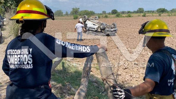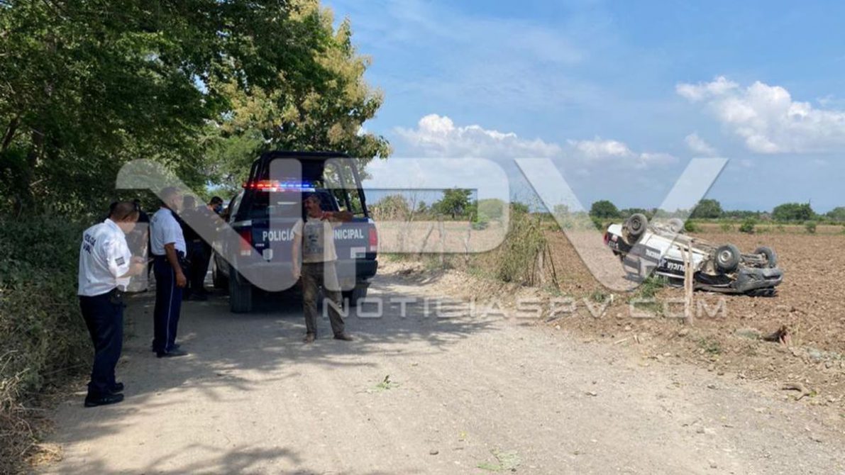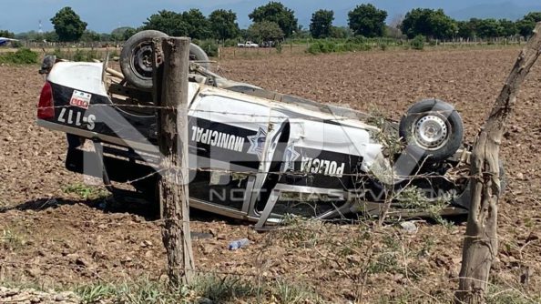 Patrulla de la Dirección de Seguridad Pública Municipal de Bahía de Banderas, termino volcada en un potrero luego de que su conductor perdiera el control de la misma, resultando lesionados los agentes policíacos, quienes fueron auxiliados y trasladados a recibir atención médica a un hospital.
