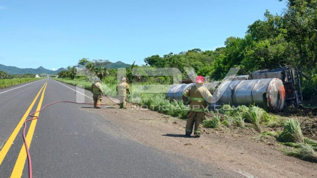 La mañana de este lunes se volcó una pipa cargada de alcohol en la carretera libre Tepic Mazatlán .