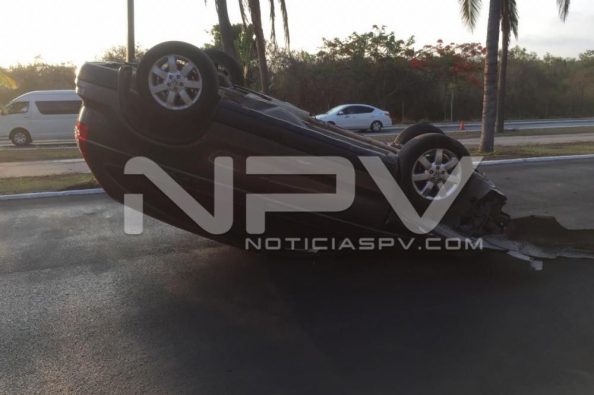 Daños materiales en una camioneta y en las vías de comunicación, fue el saldo de un aparatoso accidente que ocurrió en la zona de Flamingos, en Nuevo Vallarta, donde no se reportaron personas lesionadas, solo el susto del conductor que chocó contra una lámpara y terminó volcado con el vehículo que conducía.