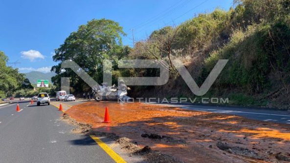 En el sitio se registró la volcadura de una cisterna que transportaba Melaza, misma que quedó regada en la carpeta asfáltica.