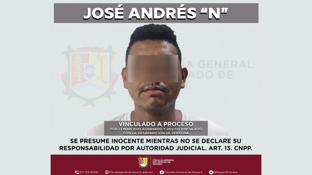 La Fiscalía General del Estado de Nayarit informó que un Juez de Control dictó auto de vinculación a proceso en contra de José Andrés “N”, por su probable responsabilidad en los delitos de feminicidio agravado y delito vinculado con la desaparición de persona, conforme a lo establecido en el Código Penal del Estado de Nayarit.