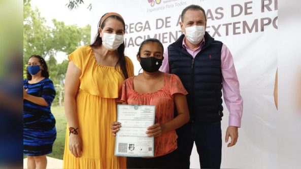 “Yo sentía que no existía, hasta el día de hoy que tengo mi acta de nacimiento, gracias al apoyo que me dieron, hoy con mi nombre y mi acta de nacimiento, siento que existo. Ya podré registrar a mis niños y mi niña podrá ir al kinder. Muchas gracias de verdad», señaló Elizabeth Castillo Sánchez, quien es uno de los 65 ciudadanos, que la mañana de este martes, recibieron de manos del presidente municipal, doctor Jaime Cuevas Tello y la LTS Ana Esperanza Berumen, presidenta del Sistema DIF, sus actas de nacimiento, documento que otorga identidad y certeza jurídica.