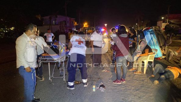 Fuerte accidente por alcance terminó en volcadura donde resultaron heridas mujeres y niños además de tres masculinos que fueron llevados al IMSS de Mezcales