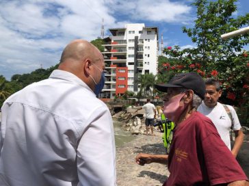 De manera puntual, el mandatario jalisciense visitó la zona donde el Río Cuale se llevó parte del puente que cruza el afluente, ahí informó que son cerca de 300 comercios y 100 viviendas afectadas.