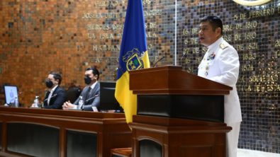 “2021 Bicentenario de la Creación de la Armada de México”, son letras doradas en el Congreso de Jalisco