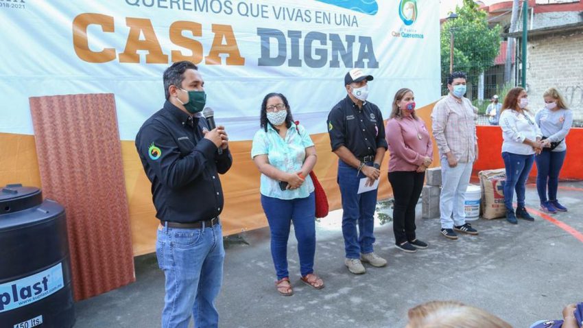 Recordó que cada uno de los materiales que otorga ‘Casa Digna’, permiten atender alguna necesidad que se tenga en la vivienda; “el block que les va a ayudar para hacer una cocinita, para hacer el baño, para hacer unas escaleras. El cemento, para hacer el piso firme, porque hay casas que son de tierra todavía, y hay casas que no tienen techo, que son de lona, o de palapa, o de cartón, con esa lámina pueden cubrir, y ahí la llevamos, poco a poco mejorando la casa que le van a dejar a sus hijos”.