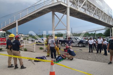Al sitio indicado arribaron los elementos de Protección Civil y Bomberos Municipales y del Estado, junto con Paramédicos de hospitales particulares, en unidades de emergencias, para brindarles atención prehospitalaria a al menos 7 personas que se encontraban a bordo de una camioneta Windstar, de color gris con placas del Estado de México, que momentos antes chocó contra la estructura metálica del puente peatonal, ubicado en el crucero de EL Tondoroque.