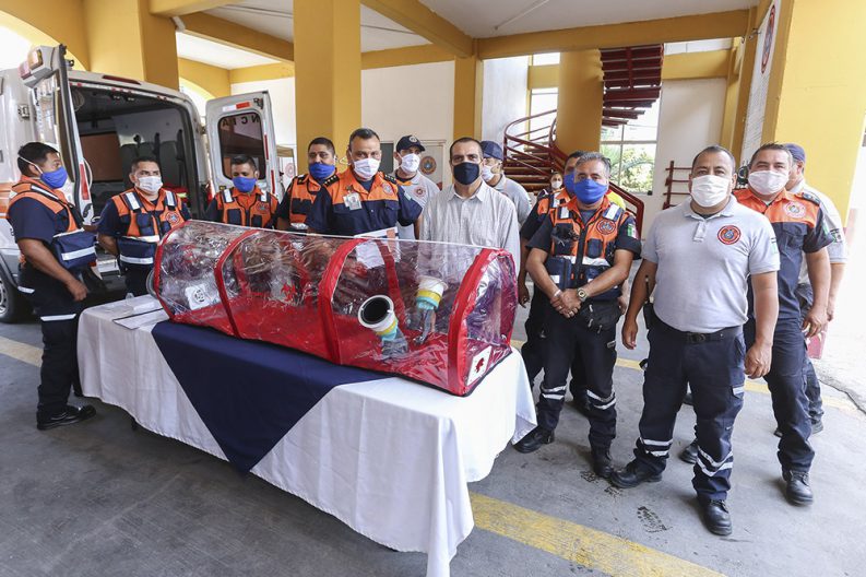 Asimismo, agradeció a Alejandro Hernández González y a Víctor Martínez de Castro Green, socios fundadores de la empresa FQLA S.A de C.V, por la donación de la Cápsula de aislamiento, para traslado de pacientes infecto-contagiosos, mejorando con ello la calidad y el servicio que se prestan a los ciudadanos.