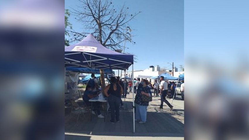 Los contratadores informan que además del monumento a Benito Juárez, donde se realizó una feria del empleo, también instalaron módulos en otras sitios, entre ellos el bulevar Zaragoza, bajo las mismas normas de dejar fuera a obesos, hipertensos y diabéticos.