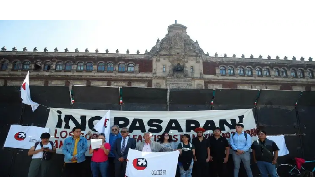 En conferencia de prensa realizada hoy frente a Palacio Nacional, donde aún siguen colocadas las vallas metálicas que se instalaron en días recientes, miembros de dicha organización leyeron un comunicado con motivo de la próxima marcha del 2 octubre, en el cual rechazaron la estrategia de «justicia transicional» del actual gobierno, por considerarla un «instrumento político empleado para poner punto final a las exigencias de justicia históricas».