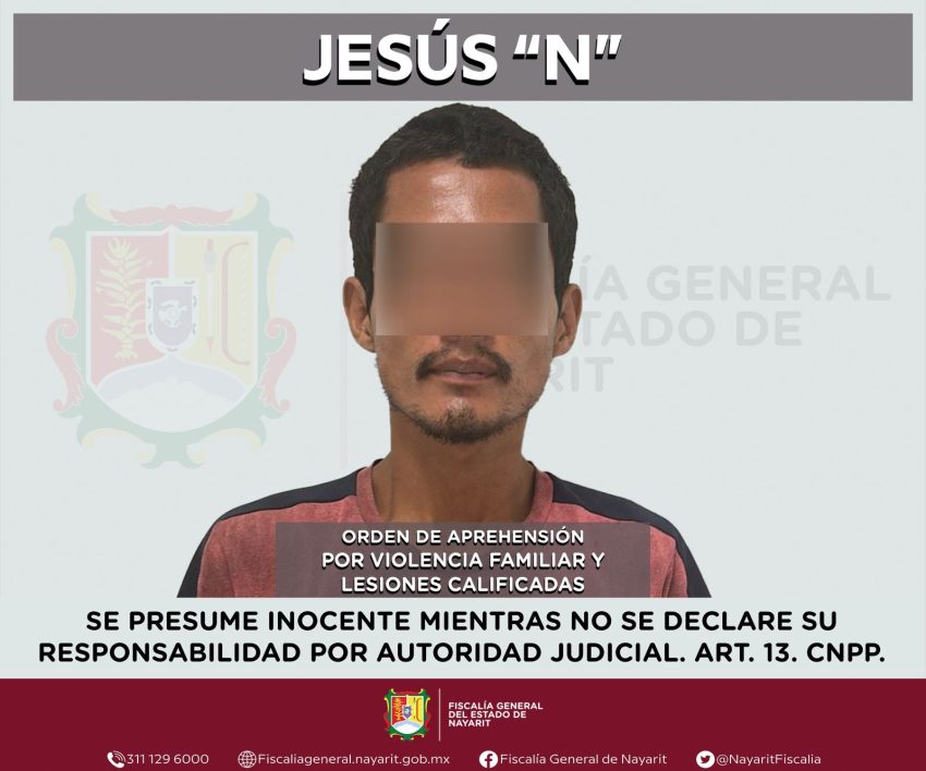 La Fiscalía General del Estado de Nayarit, a través de la Agencia de Investigación Criminal, ejecutó una orden de aprehensión en el municipio de Bahía de Banderas contra Jesús “N”, por su presunta participación en delitos de violencia familiar y lesiones calificadas.