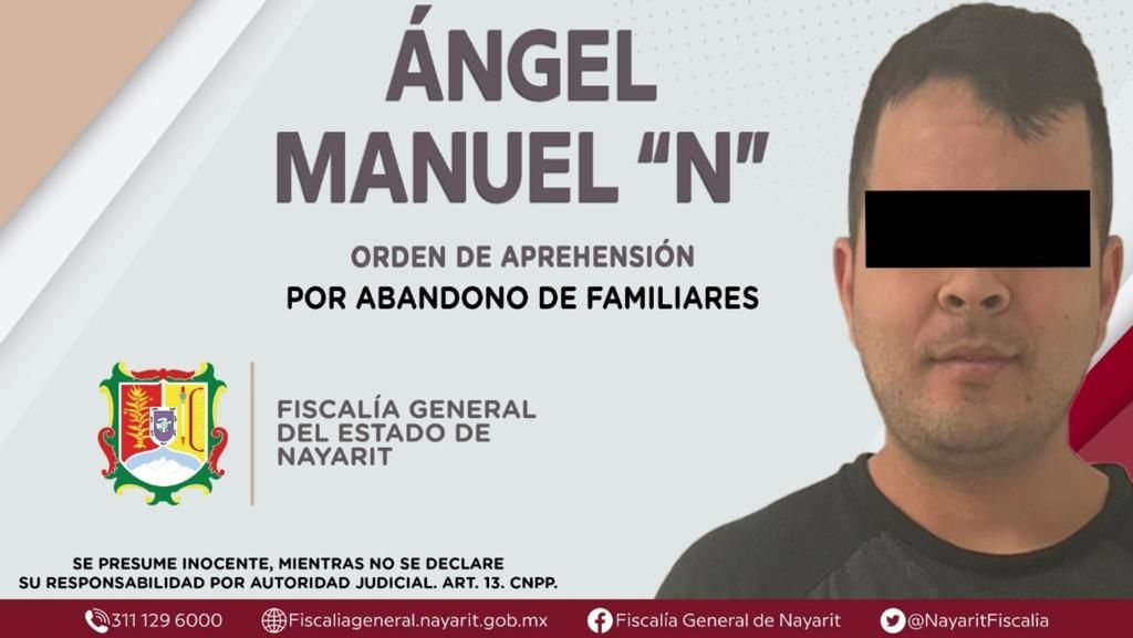 Comunicado.- La Fiscalía General del Estado a través de la Agencia de Investigación Criminal dio cumplimiento a una orden de aprehensión en el municipio de Bahía de Banderas contra Ángel Manuel “N”, por su presunta participación en hechos que bajo la apreciación de la ley encuadran el delito de abandono de familiares.