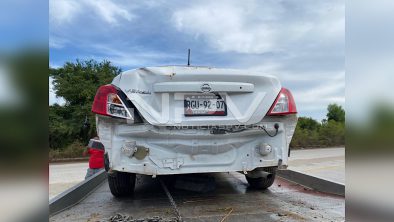 Al lugar arribaron los oficiales de Tránsito Municipal, al mando del comandante en turno Elías Percastre, quienes dan a conocer a su base operativa que se trata de un vehículo de la marca Nissan, tipo Versa, de color blanco, con placas de circulación RGU-92-02 de Nayarit, que estaba abandonado y con cuantiosos daños materiales, del que se presume que durante la madrugada sus tripulantes sufrieron un accidente y ahí lo abandonaron.