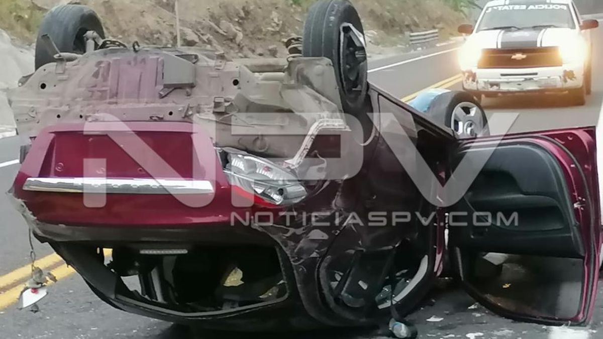 Auto termina destrozado y volcado en la autopista Las Varas–Puerto Vallarta