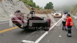 Auto termina destrozado y volcado en la autopista Las Varas–Puerto Vallarta