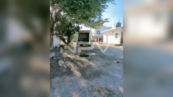 Colonos no soportan fétidos olores que desprende un camión recolector de basura en abandono localizado en el poblado de San Vicente, municipio de Bahia de Banderas, Nayarit.