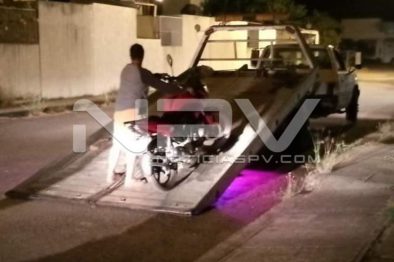 Jose Alejandro, del grupo de vecinos vigilantes, fue el que reportó a las autoridades policíacas, que ellos se encontraban realizando su rondin de vigilancia por las calles del fraccionamiento Palma Real, y al llegar al circuito playa La Peñita, se dieron cuenta que ahí se encontraba abandonada una motocicleta Italika, 200, de color rojo, que estaba afuera de la finca marcada con el número 253, misma que aseguraron y luego llamaron a las autoridades policíacas.