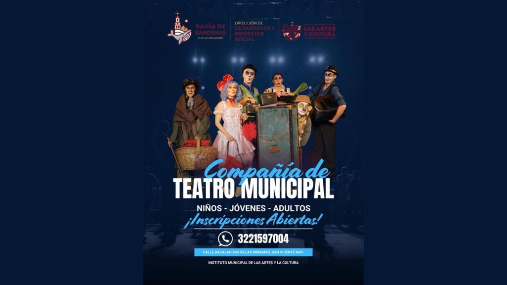 El Instituto Municipal de las Artes y la Cultura de Bahía de Banderas, en colaboración con la Dirección de Desarrollo y Bienestar Social, anuncia que ya están abiertas las inscripciones para la Compañía de Teatro Municipal. Esta iniciativa busca fomentar la creatividad y el talento artístico entre los residentes de todas las edades.