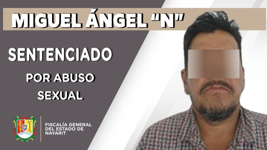 Comunicado.- La Fiscalía General del estado de Nayarit obtuvo una sentencia condenatoria de 4 años de prisión contra Miguel Ángel “N”, por su responsabilidad penal en el delito de abuso sexual cometido en agravio de una menor de 12 años de edad, cuya identidad se reserva para proteger su integridad y derechos.