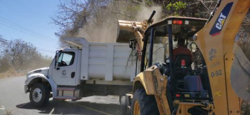 En otro frente, cuadrillas de trabajadores de Obras Públicas, con apoyo de maquinaria y camiones de volteo, llevaron a cabo labores de limpieza de cunetas sobre la carretera a Boca de Tomatlán.