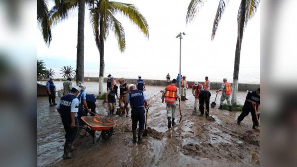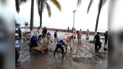 Por lo anterior, personal naval en coordinación con Protección Civil y autoridades de los tres niveles de Gobierno, efectúan recorridos por las zonas más afectadas del municipio de Puerto Vallarta, coadyuvando en la remoción y limpieza del primer cuadro de la ciudad; así como, auxiliando en inmediaciones de la desembocadura del río Cuale, con la búsqueda de una persona desaparecida, la cual fue arrastrada junto a su vehículo por el fuerte cause de citado rio.