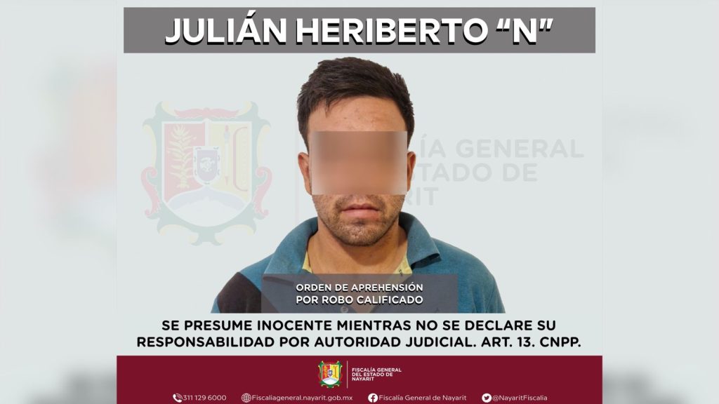 Elementos de la Agencia de Investigación Criminal de Nayarit, ejecutaron una orden de aprehensión en el municipio de Bahía de Banderas contra Julián Heriberto “N”, acusado de presunta participación en un delito de robo calificado.