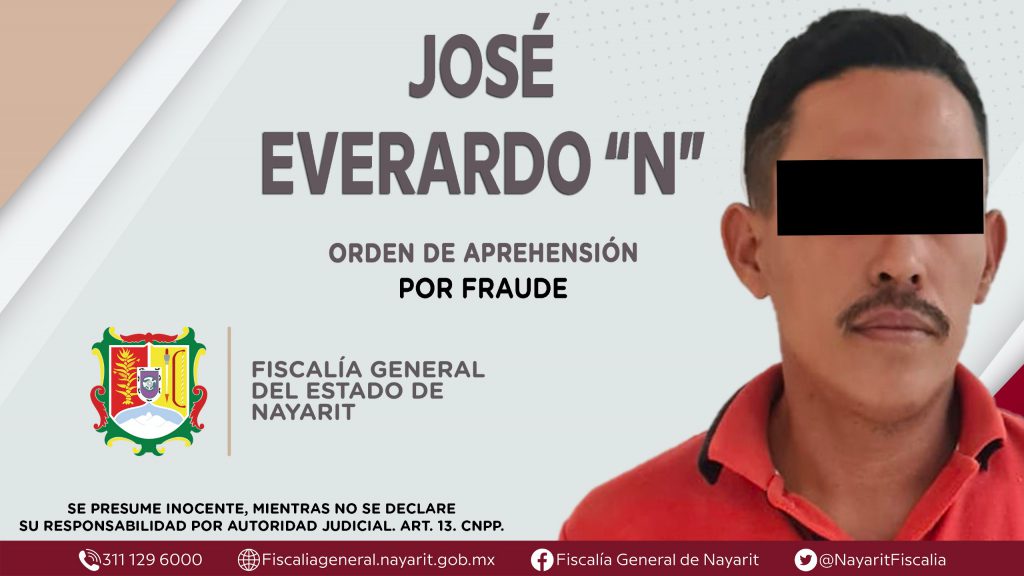 Comunicado.- Elementos de la Agencia de Investigación Criminal de Nayarit ejecutaron una orden de aprehensión en la localidad La Cruz de Huanacaxtle, municipio de Bahía de Banderas contra José Everardo “N”, por su presunta participación en hechos que según apreciación de la ley encuadran el delito de fraude, cometido en agravio de una persona de sexo masculino e identidad reservada.