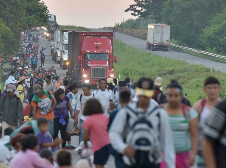 La caravana migrante durante su trayecto de Arriaga, Chiapas, a Tapanatepec, Oaxaca. Foto: Eduardo Miranda