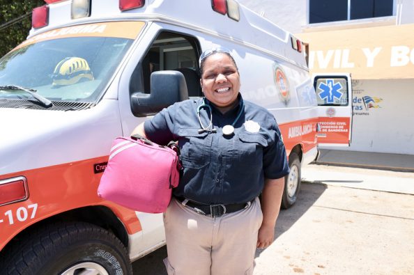 Este 24 de junio, como cada mañana, desde hace diez años, Adriana Trejo Villegas, Segundo Oficial Paramédico en la Unidad Municipal de Protección Civil de Bahía de Banderas se alista muy temprano, calza sus botas y porta el uniforme que le ha dado grandes enseñanzas y satisfacciones, pues desde su primer servicio no deja de sentir un gran compromiso con la sociedad y sobre todo con las familias de aquellos que la vida le ha permitido asistir en una situación de emergencia.