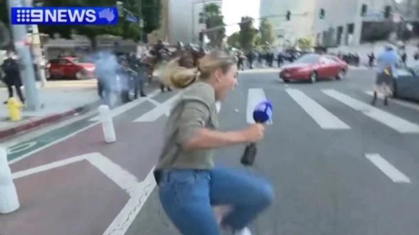 U.S. Correspondent Lauren Tomasi has been caught in the crossfire as the LAPD fired rubber bullets at protesters in the heart of Los Angeles. #9News