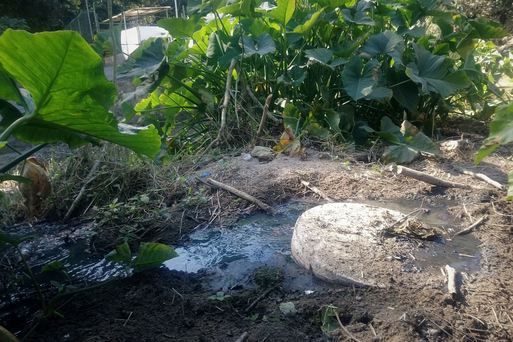 Vecinos del Guamúchil, Bahía de Banderas, Nayarit, denuncian un problema de contaminación de aguas negras en el arroyo de la comunidad, debido a que el drenaje del acceso principal fluye directamente a este cuerpo de agua.