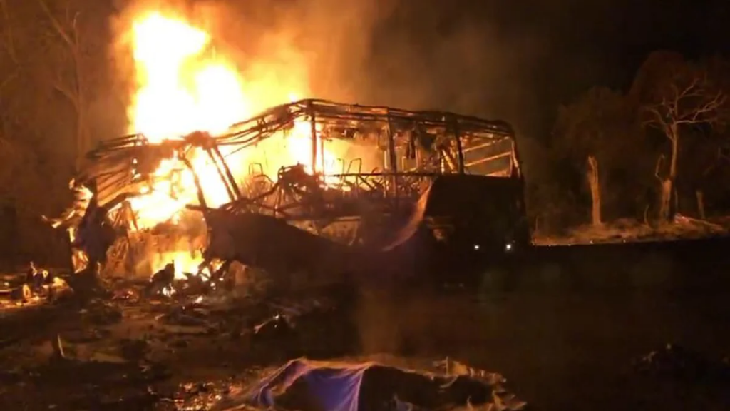 El autobús, que se dirigía a Monterrey, se impactó de frente contra el remolque que supuestamente transportaba Varsol. Este hecho provocó un incendio que calcinó al camión de pasajeros y al menos a 18 personas que viajaban en él.